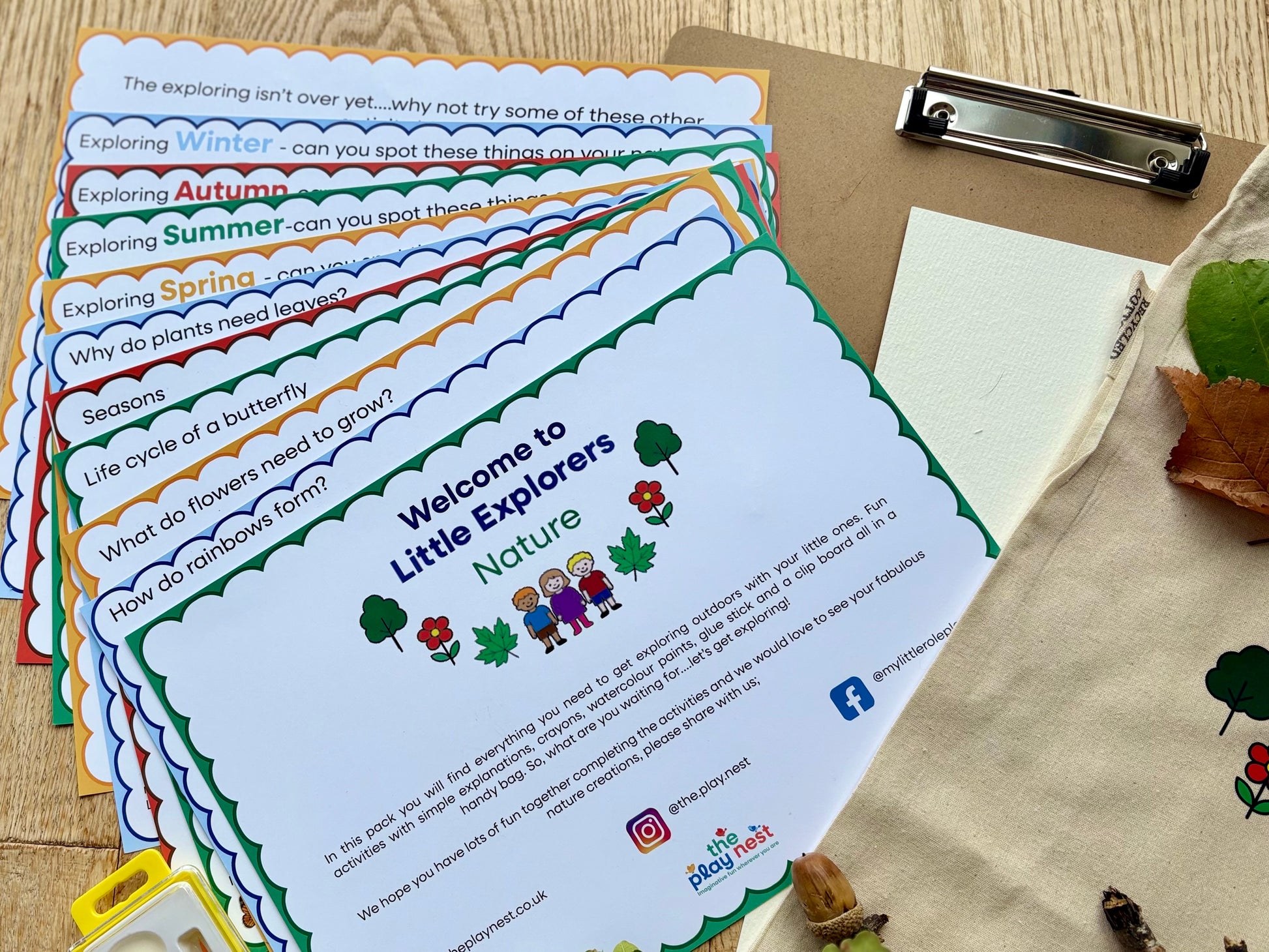 Does your little one love exploring the outdoors? Are you looking for something easy that you can pick up and have everything you need for an outdoor adventure without any of the set up faff? Then Little Explorers Nature is for you. How do rainbows form? What do flowers need to grow? Why do plants need leaves? This pack contains 10 activities all based on nature that you can (barring a pot of water for one of them) just go and do, no additional equipment needed, just head outside and get learning and exploring. Each activity is thoughtfully explained with child friendly language to help stimulate their curiosity as well as exposing them to new words. The pack also contains a clipboard giving your child a hard surface to work on whilst outside. Watercolour paints, wax crayons and a glue stick. All this is contained in a lovely recycled cotton tote bag which you could even use to collect your nature bits for your activities. As if that isn't enough, your little explorer gets a certificate and a further 10 ideas for you to try at home too.